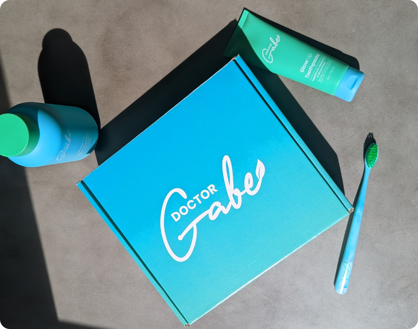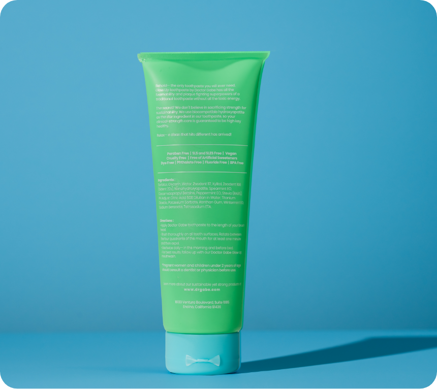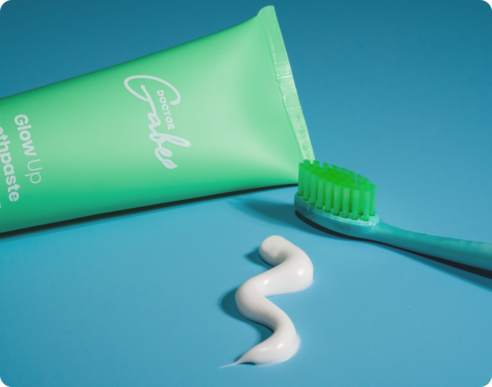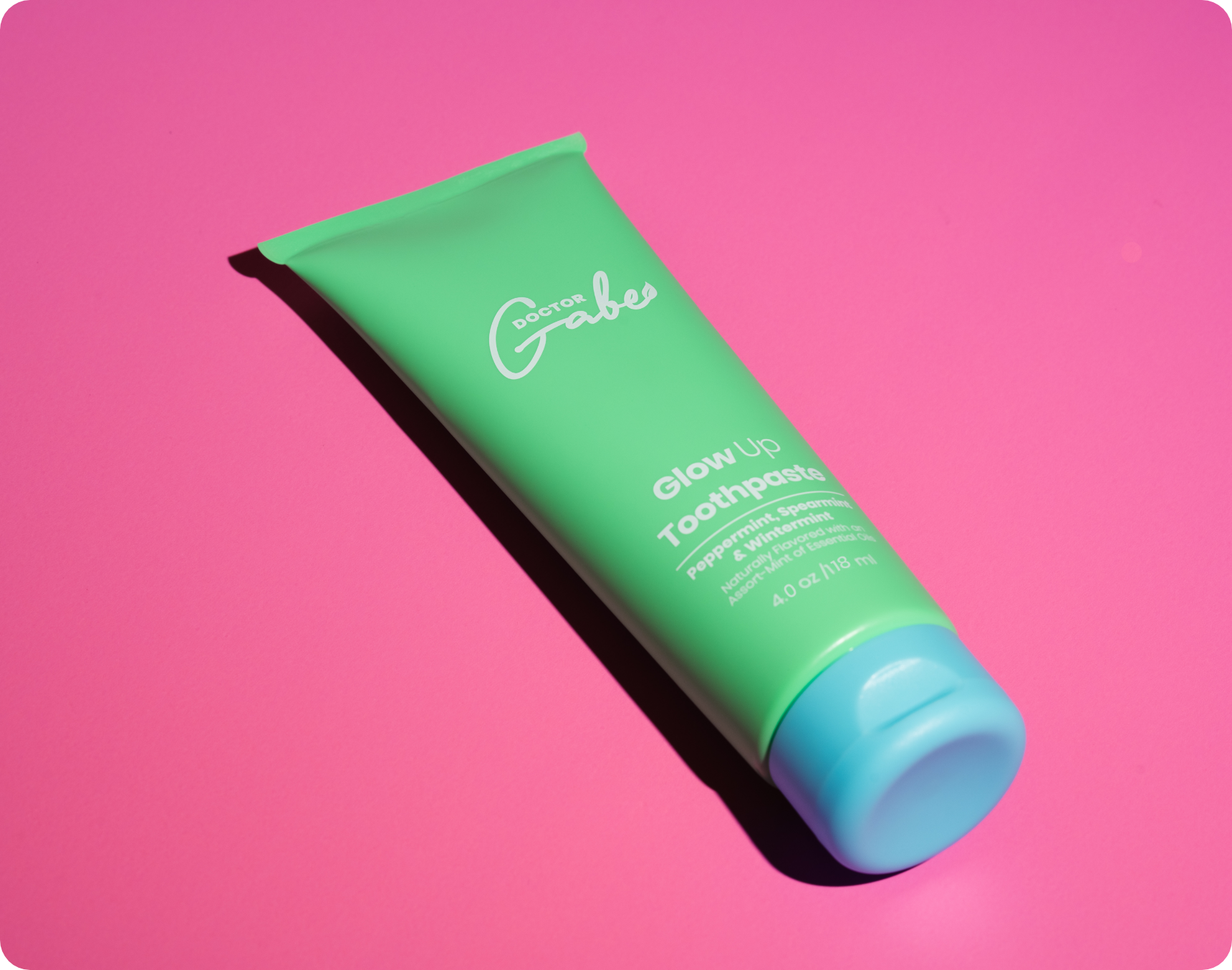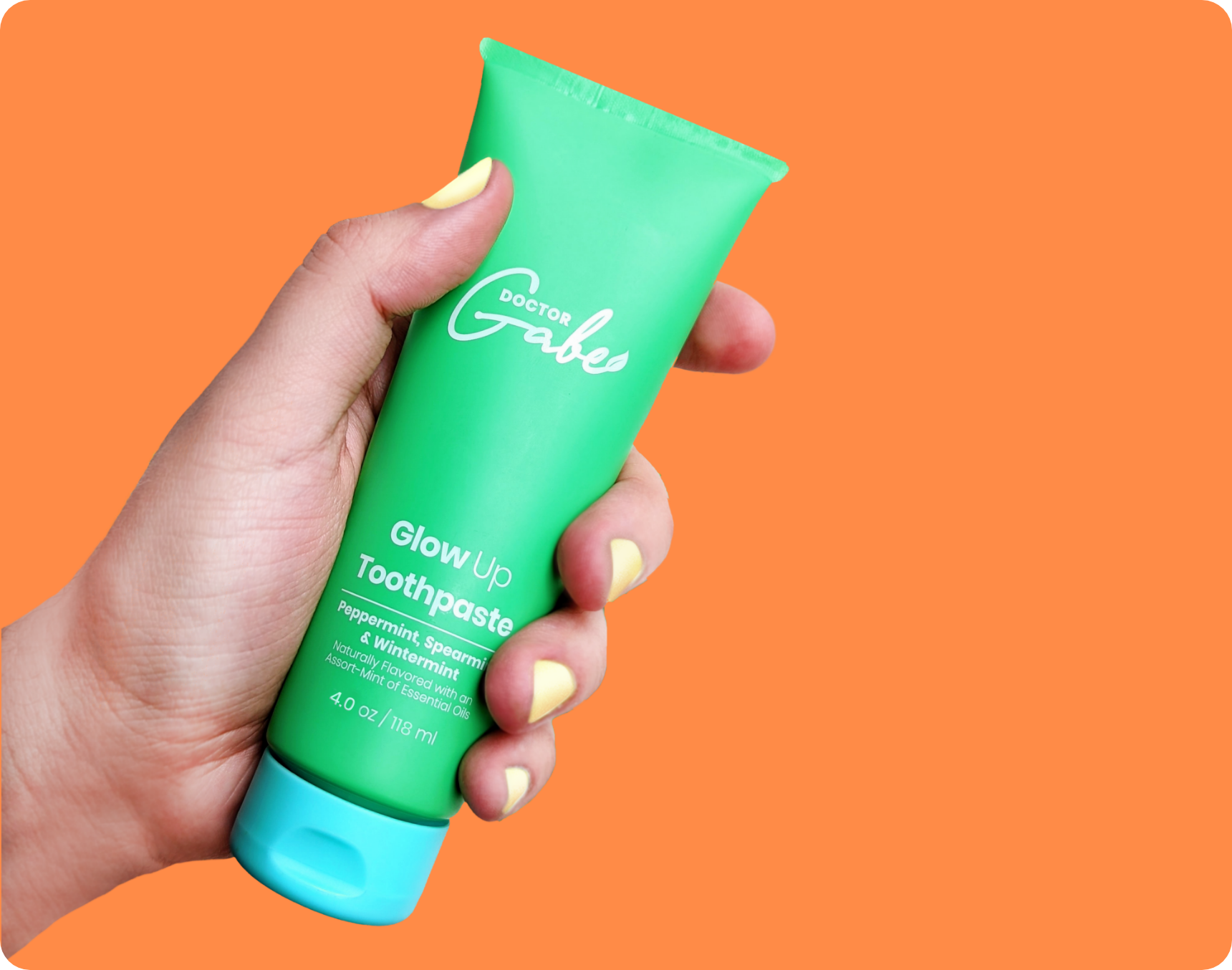 1 - Apply Doctor Gabe’s Glow Up Toothpaste to the length of the Glow Up Toothbrush head.