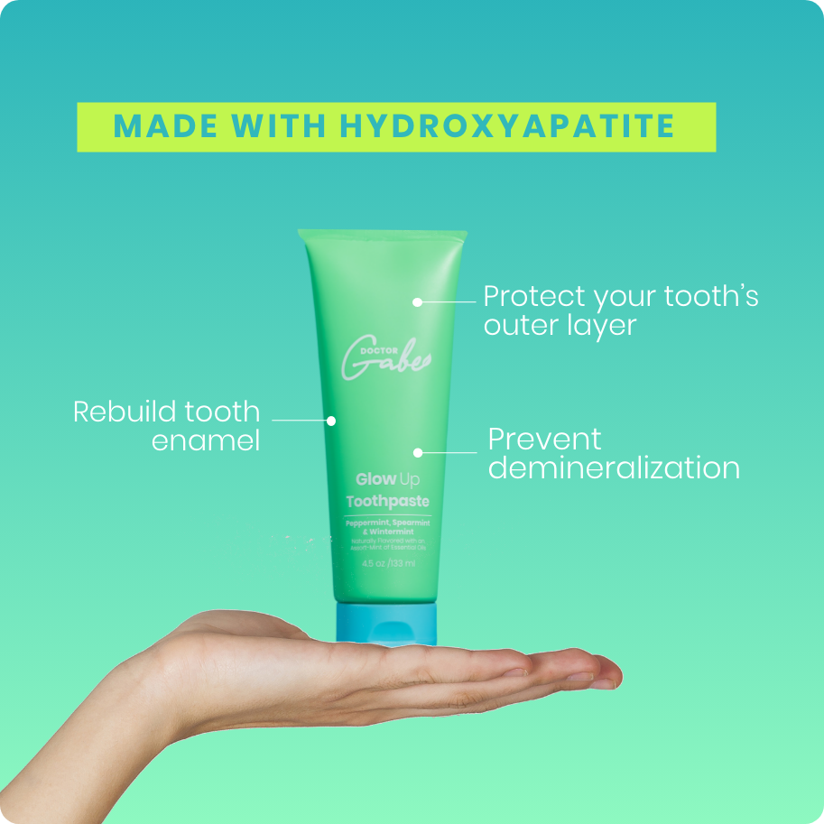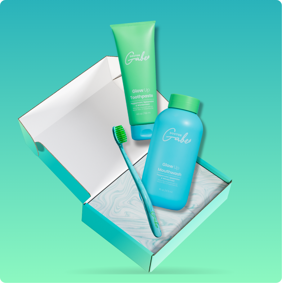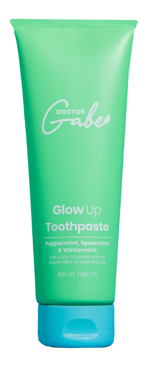 • Brush your teeth with Doctor Gabe Glow Up toothpaste and follow up with floss.