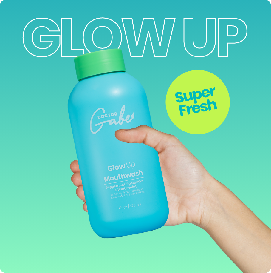 • Apply Doctor Gabe toothpaste to the length of your Dr.Gabe toothbrush head. Brush thoroughly on all tooth surfaces, rotating between the four quadrants of the mouth, for at least one minute then expel. For best results, follow up with our Glow Up mouthwash. Use twice daily— in the morning and before bed!